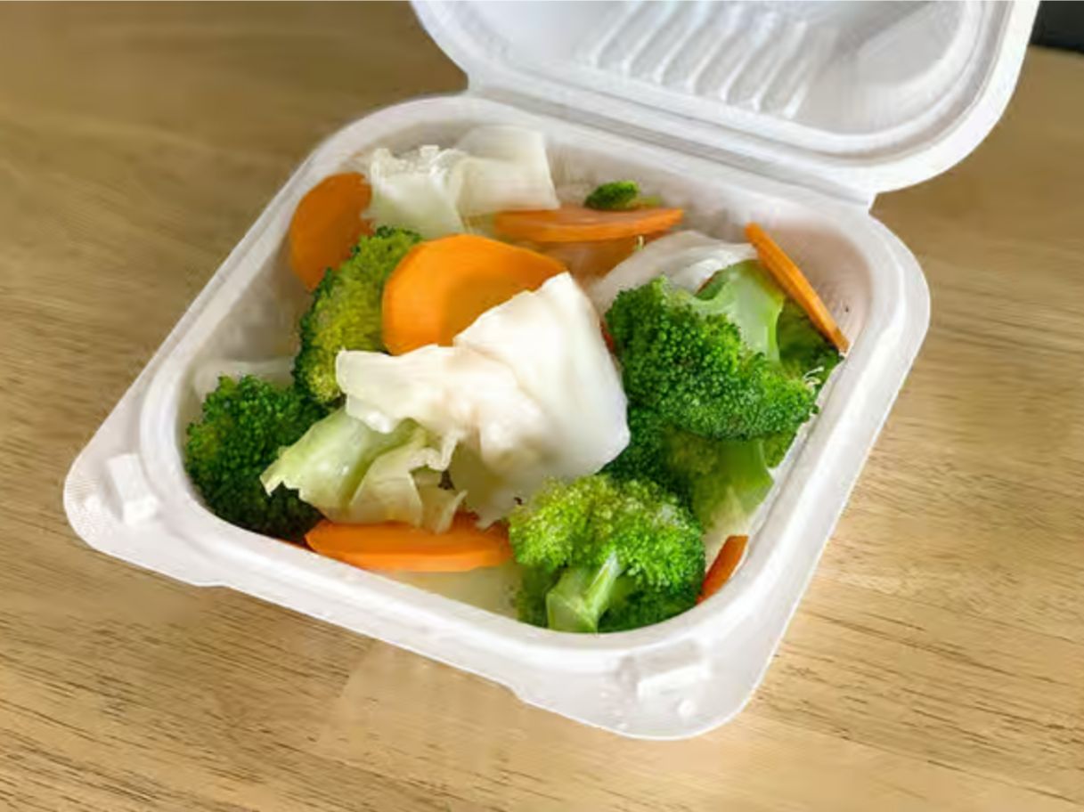 Veggie plate includes our vegetable medley consisting of broccoli, carrots, and cabbage, white rice, macaroni salad, potato salad, and side salad topped with crispy rice noodles dressed with our house made Asian vinaigrette dressing. Veggies are smothered in teriyaki sauce.