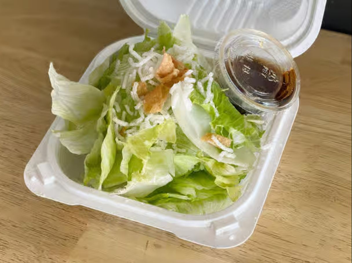 Iceberg lettuce topped with crispy rice noodles dressed in our Asian vinaigrette dressing.